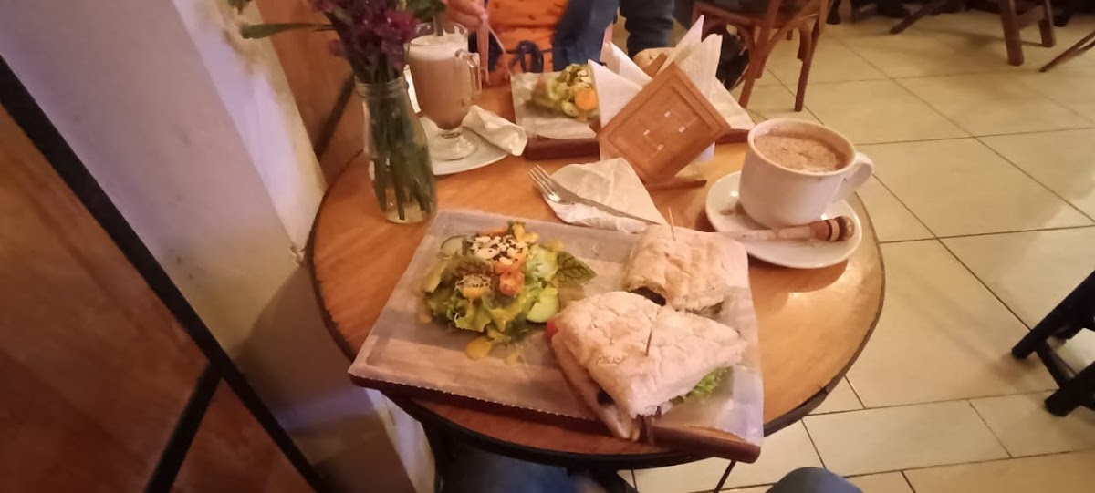 Sympatyczna kawiarnia stylizowana trochę na "zachodnią", współczesną modłę. Można wypić kawę (na ciepło i na zimno), herbatę, lemoniady i napoje, ale można zjeść też śniadanie lub coś słodkiego. Wszystko przygotowywane na miejscu. I można zjeść lub wypić z widokiem na rynek Santa Cruz Xoxocotlan.