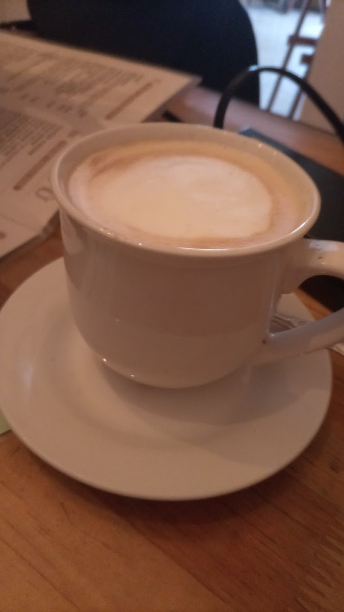 Muy buena atención, creo que eso lo destaca en este momento, el trato fue amable y rápido, lugar limpio y con ventilación. No pedi comida así que solo puede evaluar su capuchino que es bueno. Y en costo es bueno, un punto medio.